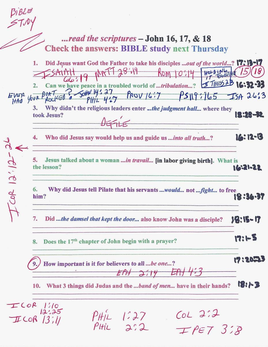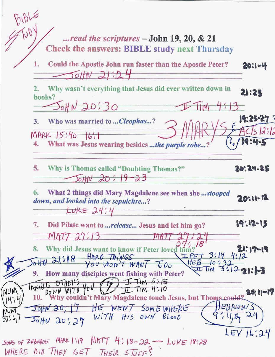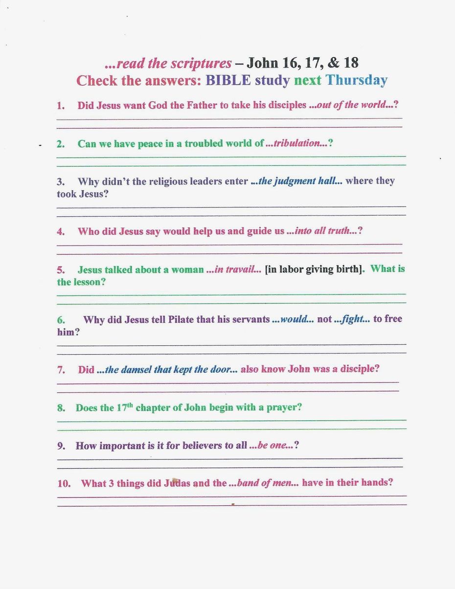 Thursday Night Bible Questions